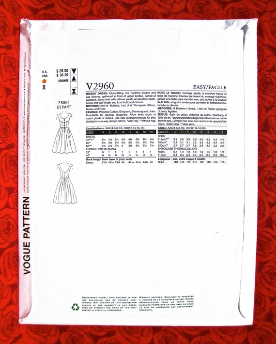 Vogue Sewing Pattern V2960 Dress 1950 S New Look Style Etsy De